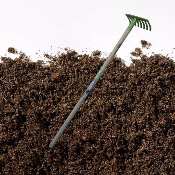 Rateau de petite taille, idéal pour composteur partagé ou individuel. Pour faciliter le brassage des déchets alimentaires avec le broyat de végétaux.